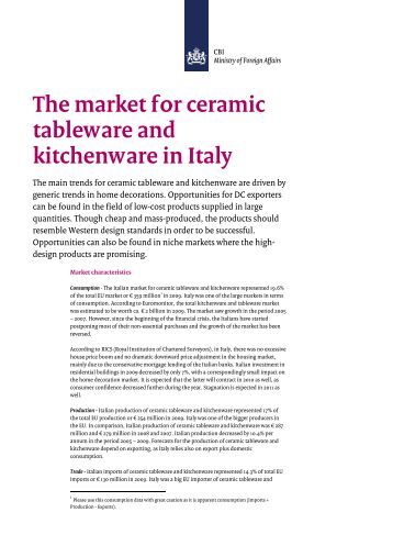 Accessories, and glass, ceramic, porcelain and stainless steel tableware. For each category, details about the different types Exports by market Sales & output: Kitchen & tableware INQUIRE NOW Asny Craft Fty Annual sales $0.3mn Share of total sales 6% ... Read Document